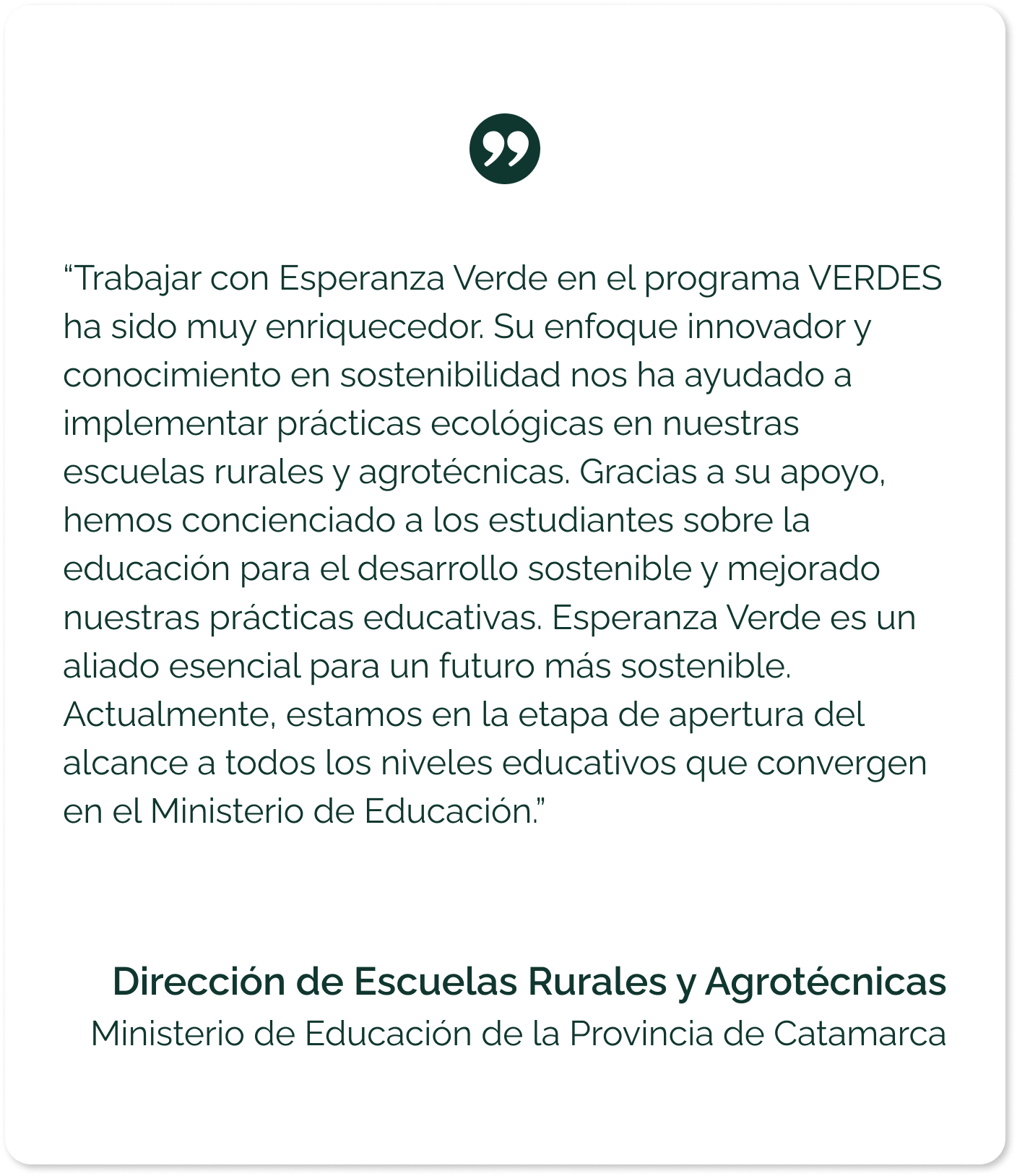 Desde Esperanza Verde co-creamos un programa educativo orientado a la sostenibilidad territorial. Nuestro equipo trabajó en el diseño pedagógico, la identidad visual, la narrativa institucional y la coordinación estratégica para implementar acciones en escuelas rurales.